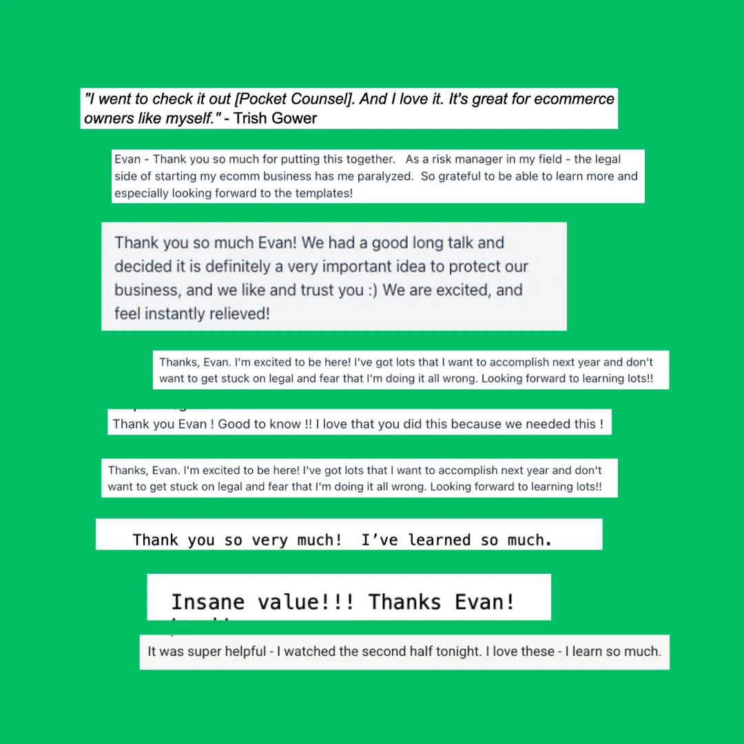 Pocket Counsel gives you a real legal foundation - built by someone whose done this for thousands of sellers - so you can can protect your store the right way!